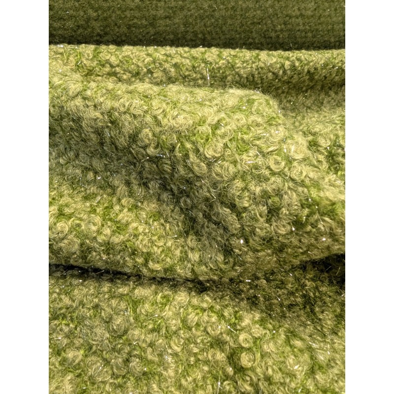 Laissez-vous séduire par ce tissu Teddy Foil vert, à l’aspect doux et volumineux, subtilement illuminé par de fins fils brillants intégrés qui apportent une touche lumineuse et élégante. Son rendu à la fois cosy et sophistiqué en fait un tissu parfait pour des créations originales et tendance.